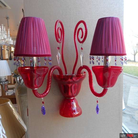Бра Beby Italy LA FEMME 7700A01 7700/2A в классическом стиле из Италии. Натуральное муранское стекло красного цвета отлично дополнено присобранными тканевыми абажурами из органзы. Это бра идеально подойдет для заведений, в которых требуется оформление в стиле Мулен Руж.