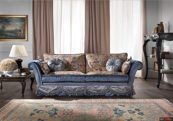 Диван Epoque Salotti Cedar в классическом стиле из Италии. Структура: дерево и его производные, эластичные ремни с высокой сопротивляемостью. Подставка для сиденья может поставляться со спиральными пружинами по запросу. Начинка: пенополиуретан с различной плотностью, полиэфирные волокна. По желанию, обивка из гусиного пуха. Особенности: flounce со стандартным рукотворным фиолетто
