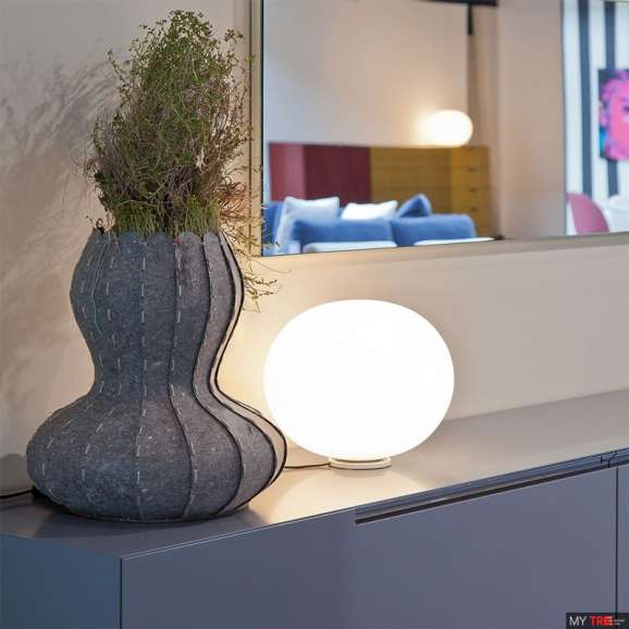 Настольная лампа Flos Glo-Ball Basic Zero F3331009 в современном стиле из Италии. Настольная лампа, обеспечивающая рассеянное освещение. Рассеиватель, состоящий из подкисленного вручную, ручного выдувания, сверкающего опалового стекла и литой под давлением алюминиевой резьбовой гайки с покрытием из алодинового покрытия. 30% армированная стекловолокном литьевая полиамидная основа. Серый окрашенный, литой под давлением алюминиевый диффузор. На кабеле есть электронный диммер, который позволяет регулировать яркость света.