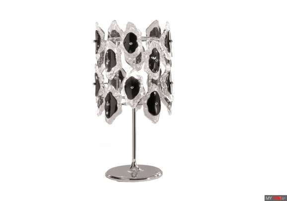 Настольная лампа IDL Luce da Vivere Sofia 488/1LP в современном стиле из Италии. Корпус в отделке хром или светлое золото. Муранское стекло доступно в цвете: прозрачное с черным декором, прозрачное с белым декором, прозрачное с золотым декором.