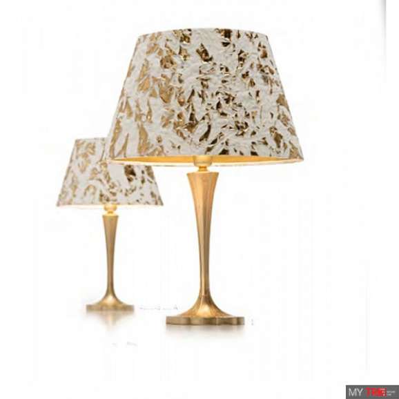 Настольная лампа от итальянского бренда Luce Crea, серия - Rondo. Белый тканевый абажур с золотым орнаментом прекрасно и гармонично впишется в светлый интерьер, однако с тем же успехом он будет контрастировать и с тёмными тонами.