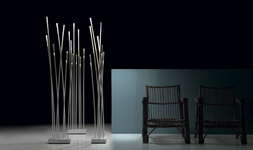 Foscarini – Twiggy. Марк задумывал этот светильник, вдохновившись рыбалкой. Он хотел создать торшер, который напоминал бы удилище, но основная проблема состояла в том, что даже суперлегкий плафон из пластмассы нужно было чем-то уравновесить. Команда Foscarini предложила основание в виде тонкого диска. Twiggy, который мы знаем, напоминает не только рыболовецкие снасти, но и символизирует бамбук или тростник, которые часто растут у воды. Первый такой светильник был выпущен в 2006 году, а уже в 2007 он получил награду IF Design Award. Позже серия пополнилась подвесными и настольными лампами, а в 2020 году вышла деревянная версия торшера.
