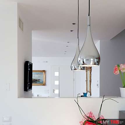 Подвесной светильник Fabbian Bijou D75 A01 15 в современном стиле из Италии. Плафон доступен в 3-х цветах: белый, чёрный и полированный хром. Хорошо подходит для кухни в небольшой квартире-студии. Лучше всего смотрятся в композиции из нескольких единиц.