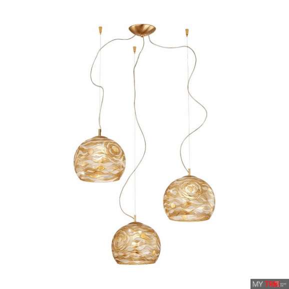 Подвесной светильник Kolarz Luna 0392.33.3.Aq.Ch в современном стиле из Австрии. Отделка: 24-каратное золото, декоративные элементы: ручная роспись Aqua Champagne. Три плафона полусферической формы изнутри покрыты золотой паталью. Вы можете купить подвесной светильник Kolarz Luna 0392.33.3.Aq.Ch на нашем сайте по лучшей цене!