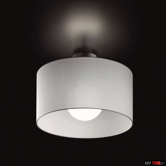 Потолочный светильник Morosini Fog PL 50 в современном стиле из Италии. Коллекция ламп в сатиновом никелевом металле; белое сатиновое выдувное стекло, абажур в цвете слоновой кости, белая, черная и моксовая ткань Понге.