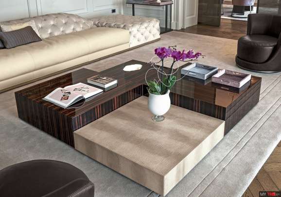 Столик Longhi Safir в классическом стиле из Италии. Коллекция деревянных журнальных столиков на две высоты с возможностью вставки света с вершиной оникса. Деревянная отделка: глянцевое эбеновое дерево, глянцевый орех Canaletto, матовое черное дерево, матовый орех Canaletto, обитый кожей образца. Покрытые лотки завершают сбор.
