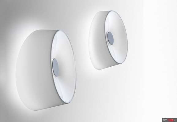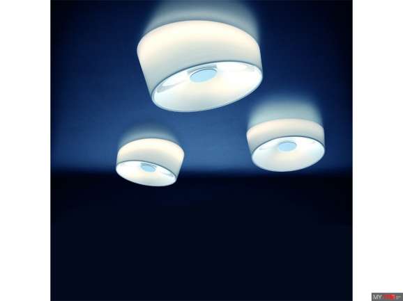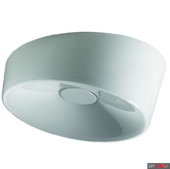 Светильник потолочный Foscarini LUMIERE 1910052 11 в современном стиле из Италии. Верхняя часть диффузора наклонена по отношению поверхности, к которой крепится светильник, поэтому создается особый оптический эффект, будто стекло разделено надвое.