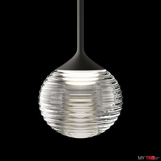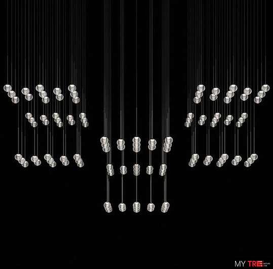 Коллекция Algorithm состоит из подвесных сфер, подвешенных на разной высоте и прикрепленных к потолку с помощью плавающей трубчатой конструкции.