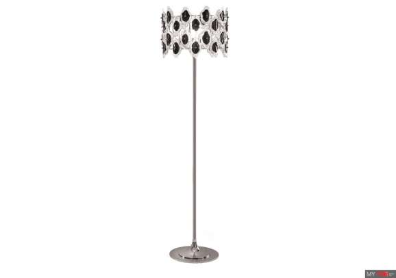 Торшер IDL Luce da Vivere Sofia 489/1P в современном стиле из Италии. Корпус в отделке хром или светлое золото. Муранское стекло доступно в цвете: прозрачное с черным декором, прозрачное с белым декором, прозрачное с золотым декором.