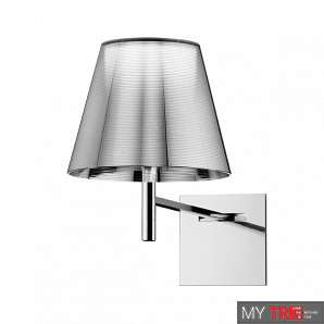 Бра Flos Ktribe W F6307004 у сучасному стилі з Італії. Настінний світильник, що забезпечує розсіяне освітлення; перемикач, розташований поряд з дифузором, дозволяє регулювати яскравість на 4 рівнях через дистанційний димер. Плісований абажур із замаку доступний в обробках "під тканину", полірований або хромований метал. Утримувач кронштейна та дифузора з полірованого алюмінію. Внутрішній дифузор із інжекційним корпусом (полікарбонат). Зовнішні дифузори з прозорого або димчастого PMMA (поліметилметакрилат) та срібло або бронза на внутрішній поверхні, нанесена вакуумним алюмінієвим покриттям. Лите верхнє кільце з полікарбонату повністю прозоре або прозоре коричневе.