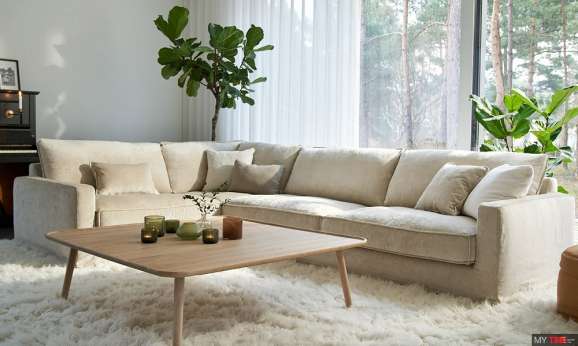 Диван Sits Malte з пуховим наповненням подушок спинки та сидіння. Лінійка включає багато конфігурацій кутових і прямих диванів, пуфи, а також різні варіанти оббивки, оздоблення. Можливі варіанти зі знімним чохлом. Розміри: 298 x 110 x 85/44 см.