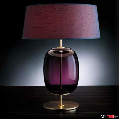 Настільна лампа від італійського бренду Vintage, серія - Blum. Аметистовий тканинний абажур виглядає дуже сучасно і "смачно". Цей світильник зіграє роль лампи на столику в спальній. Незвичайна еліпсоїдна форма основи світильника підійде до модерних інтер`єрів.