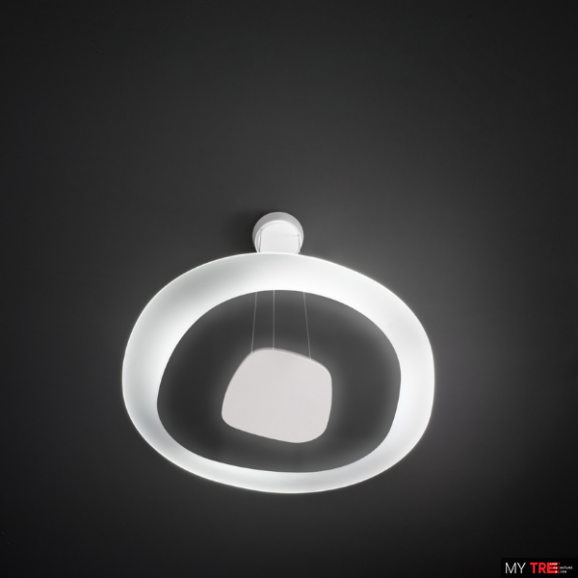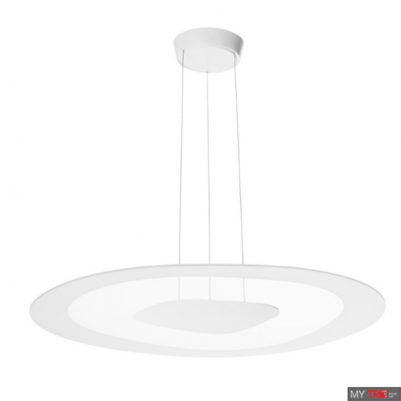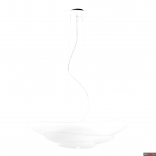 Підвісний світильник має подвійне випромінювання для застосування всередині будинку. Залізний корпус даного пристрою пофарбований в білий колір, оброблений за допомогою покриття; скляний дифузор має піскоструминну обробку; залізна монтажна рама пофарбована в білий колір і оброблена лакофарбовим.