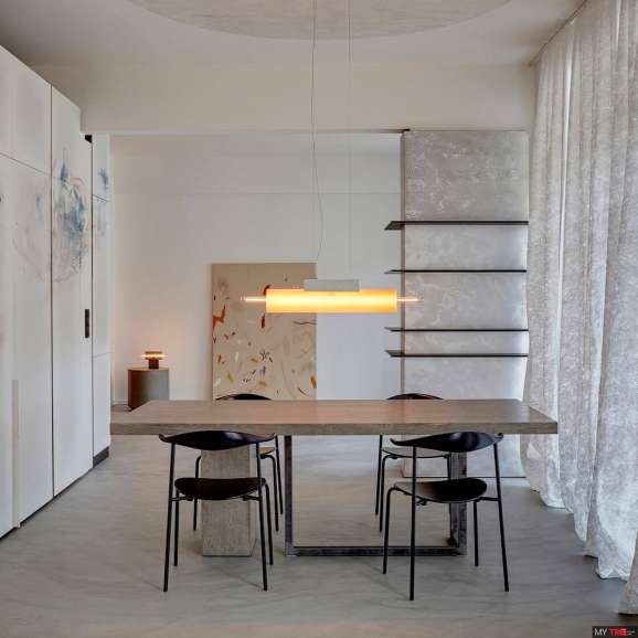 Сучасний, але позачасовий. Екстравагантний у своєму стилі та використанні чистих геометричних форм. Натхненний архітектурою. Підвісний світильник Brokis Overlay PC1298 виник в результаті синтезу різних матеріалів на мудбордах під час творчого процесу, який включав пошук ідей та асоціацій між мистецтвом і дизайном, накладання різних текстур і гру з об’ємами.
