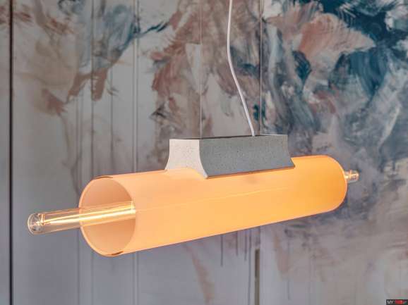 Трубки з видувного прозорого скла надають колекції Overlay виразного характеру, як і унікальне бетонне кріплення з уламками переробленого скла від Janštejn Glassworks. Твір відливається в різні прямокутні об’єми спеціально для кожного типу світла, здатного вмістити як прості, так і багатокомпозиційні композиції. Усередині бетонного кріплення лежить витончена оболонка з матового або прозорого скла, центральна лінія якої позначена світловою трубкою, яка, здавалося б, ширяє всередині. Типологія колекції Overlay включає горизонтальні підвісні варіанти, настільні світильники та настінні світильники, які відкривають двері в нове царство можливостей у мистецтві освітлення.