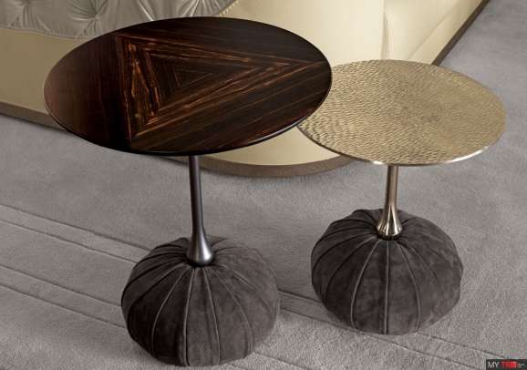 Столик Longhi Bag& в класичному стилі з Італії. Журнальний столик з центральною структурою з металу. Конструкція обробки: яскраве світле золото, матове золото шампанського, яскравий хром, яскраво-чорний хром, матова матова бронза. Оздоблення: як структура, лиття ручної роботи, матове чорне дерево, матовий горіх Canaletto, мармур Portoro, елегантний мармур з коричневого дерева, мармур з пористого дерева, сріблястий хвильовий мармур, порт чорний мармур, мармур Frappuccino, Cala , Основа має структуру з дерева та металу, покритих пінополіуретаном високої щільності. Основа виконана з м`якої тканини або тканини. Доступний в «Capitonnè» з цільнокольоровими кнопками чи кристалами Swarovski або з радіусом складок на колі. Він не знімається.